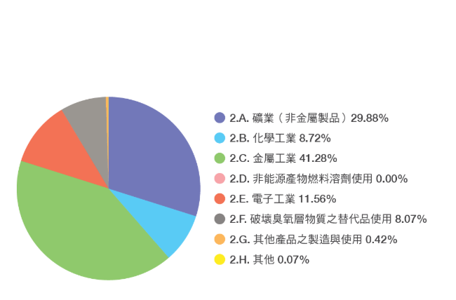 圖二、2023 年工業製程及產品使用部門溫室氣體排放量占比