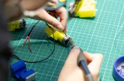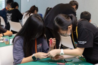 這次的小砲車模組,是由安康高級中學FRC7632團隊金牌教練蘇鼎欽及邱翌淳,兩位教練研究開發的教育訓練課程,從零件到模組,不僅使用到雷射雕刻、3D列印、馬達、電控,老師也與學員們分享無線網路2.4GHz和5GHz之間的差異,雖然5G較快,但2.4G頻率能夠傳輸比5G頻率更遠,但2.4G也會因設備數量多,而受到較多的干擾,所以在任務遊戲時,學員就需要輪流開啟,讓自己的搖控器與小砲車連線。