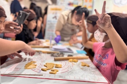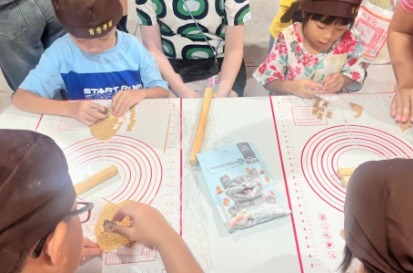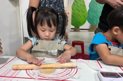 大家好奇的詢問要在展場做餅乾?是的,我們將小小的攤位打造成烘焙小教室,攤位中應有盡有,但仍要歸功於「聯華水手牌」新品粉,簡單易烘焙,不需要攪拌器,也不用繁瑣複雜的製程,非常適合讓小朋友、新手操作,享受親子烘焙的幸福感。這次活動中,設計了「黑芝麻及白芝麻杏仁雪紡酥」,使用派脆餅乾粉及健康的雜糧黑芝麻和白芝麻,讓小朋友現場搓揉成糰,並完成分割滾圓,餅乾製程毫不馬虎,最後送進烤箱。