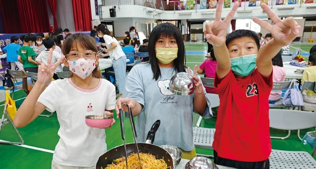 切菜翻炒調味 學生對料理熱情洋溢 —— 李蕙蓉 老師這「育秀教育基金會-教學行動車」~《麵粉的秘密》