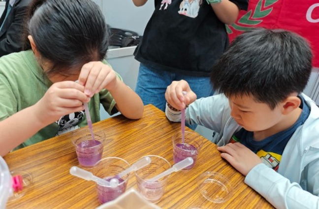 育秀教育基金會繼2023年首次受邀參與由國家科學及技術委員會(以下簡稱國科會)辦理科普活動後,每年持續攜手中華穀類食品工業技術研究所(以下簡稱穀研所)設計科普實驗,參與「Kids' Sciencee—小小科學家來敲門」與「2025台灣科普環島列車」盛事,設置科學市集攤位,與現場參與的學童互動。