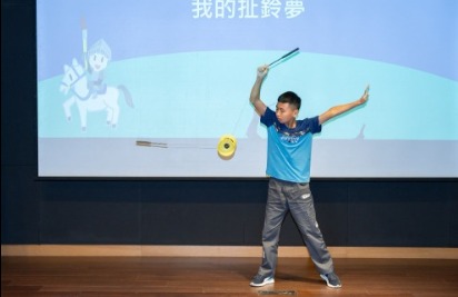 雲林縣僑和國小的林明德小朋友,也為我們表演了他最拿手的扯鈴,演繹自己從小學一年級到現在堅持不懈、努力學習的成果,與作文中不同的是,他這次不再像參加比賽般的緊張,而是享受這個舞台,讓大家一起見證他的美好成果。