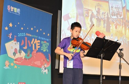 現場除了評審頒獎之外也有許多精彩的演出,基隆市尚仁國小劉承霖為我們帶來小提琴獨奏,在他的繪本中提到自己是ADHD(注意力不足過動症)患者,因此在課堂上常常靜不下來,學習東西時也會不斷分心,但在接觸到小提琴之後,雖然學習過程中音符還是會像蚱蜢般跳躍眼前,但憑著毅力與喜愛,最後也「終於做到了」!