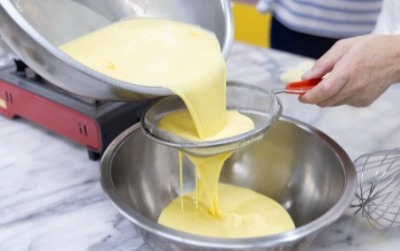 4.布丁杯中先放焦糖液,每杯約90g布丁液。