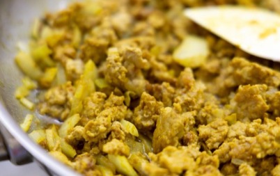 內餡:沙拉油24g、碎洋蔥153g、豬餃肉302g、鹽3g、細砂糖3g、咖哩粉6g、味精2g、玉米澱粉6g